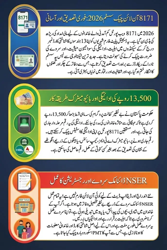 The 8171 Check Online 2026 CNIC Verification and Payment Status system has transformed the way financial assistance is delivered in Pakistan. With improved digital verification, increased quarterly payment of Rs. 13,500, biometric banking integration, and SMS support for rural areas, the platform now offers greater transparency and convenience.