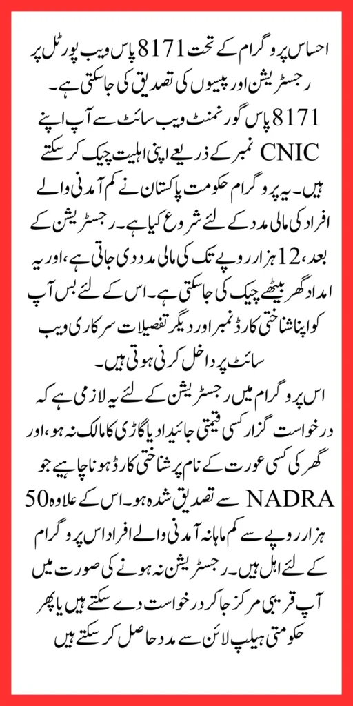 8171 Pass Gov Pk 12000 The government of Pakistan has started the Ehsaas Program under the Ehsaas Program of 25 thousand. You can also get your registration for the Ehsaas program for 25 thousand rupees.