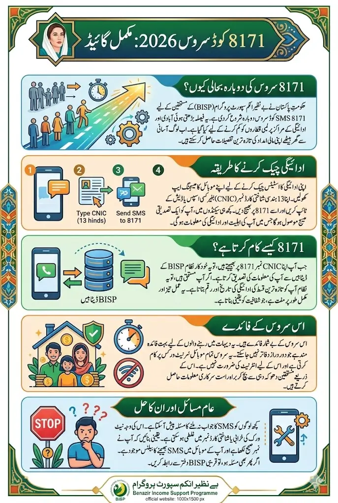 8171 SMS Code Service 2026 Resume government of Pakistan has once again resumed the 8171 SMS Code Service in 2026 to help beneficiaries check their latest payment updates easily. Millions of families who receive financial assistance through the Benazir Income Support Programme depend on timely information about their installments. In the past, many beneficiaries had to visit offices or payment centers just to confirm whether their money had arrived. This process was slow and often caused long queues.