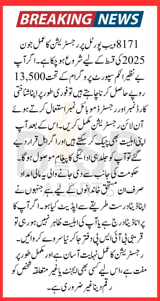 8171 Web Portal Registration July 2025 If you are waiting for the next BISP payment of Rs. 13,500, now is the right time to complete your registration on the 8171 Web Portal. This government platform is designed to make it easier for eligible families to access support under the Benazir Income Support Program and other assistance schemes. In this detailed guide, you’ll learn everything you need to know about registering, tracking your status, fixing errors, and getting approved without visiting any office. The process is now completely online, fast, and free of cost.