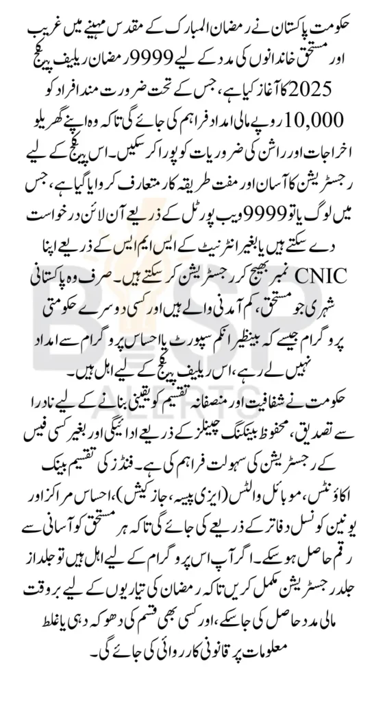 Who Can Apply for the 9999 Ramzan Relief Package?