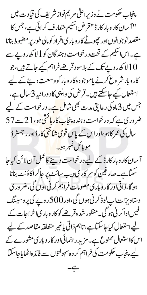 The Asaan Karobar Card is a revolutionary financial tool launched by the Punjab government to support small businesses and young entrepreneurs. By providing interest-free loans, the scheme aims to reduce the financial barriers faced by people who want to start or grow their businesses. Whether you are looking to set up a new venture or expand an existing one, this scheme offers a flexible repayment structure that can help you succeed.