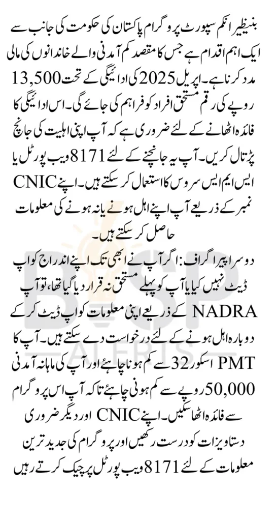 You Can Also Read: BISP 8171 Payment 13500 April 2025 Check Status