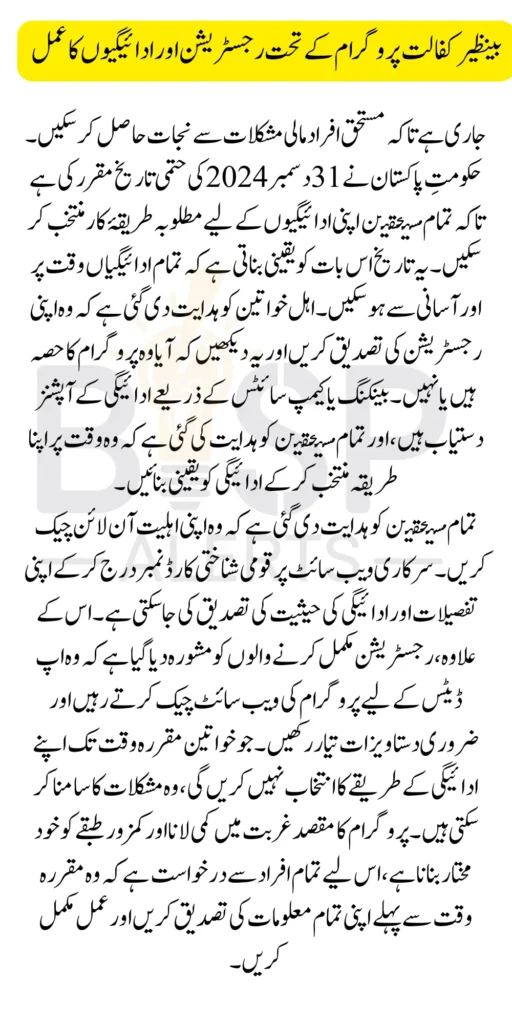 Benazir Kafaalat 10500 Payment Receiving Deadline