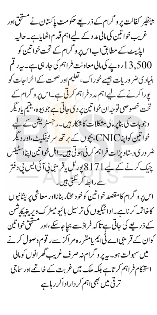 The Benazir Kafaalat Program is a beacon of hope for millions of deserving women across Pakistan. With the increase in the payment to 13500, the program continues to provide critical financial support to those who need it most. Eligible women are encouraged to complete their registration process and avail themselves of this assistance.