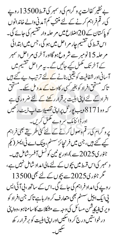 Benazir Kafalat December Payment Regularly checking eligibility and maintaining up-to-date information ensures uninterrupted access to payments. For those facing eligibility issues, updating information on the portal can help resolve potential disqualification.