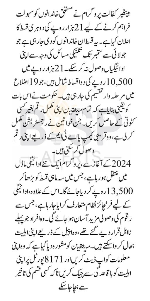 Benazir Kafalat Program 10500+10500 Double Stipend