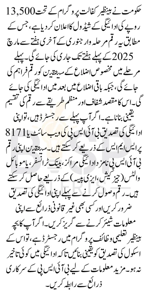 Benazir Kafalat 13500 Payment Release Date