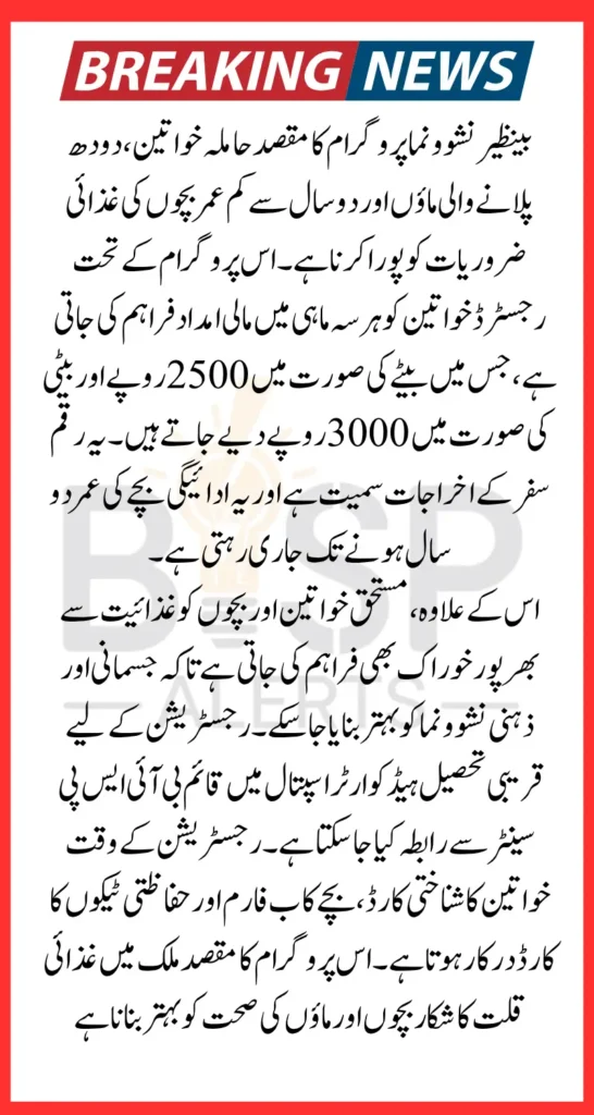 Benefits and Benazir Nashonuma Monthly Payment Structure
