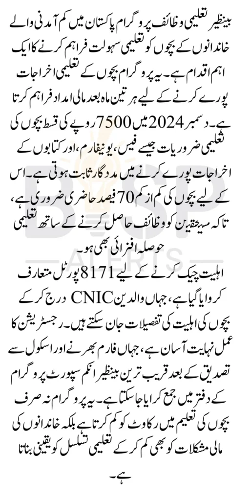 Benazir Taleemi Wazaif Program