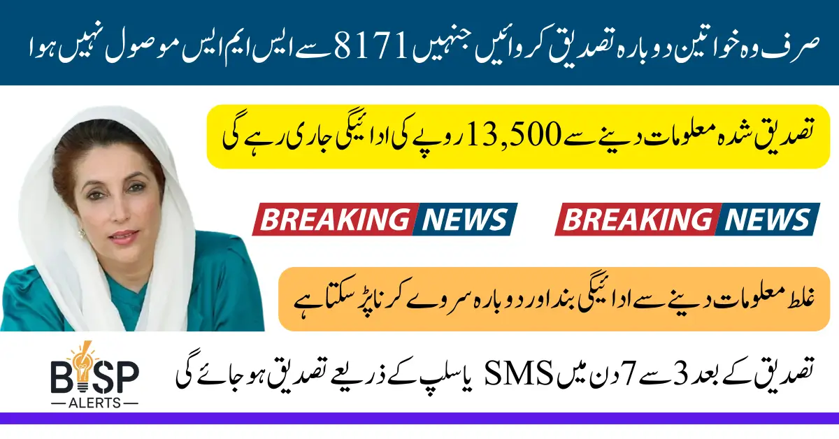 BISP 8171 Reverification Process BISP has announced a critical reverification process for 2025. This update is particularly important for registered women who are part of the BISP 8171 program and wish to continue receiving the newly increased Rs. 13,500 payment. Many women have received an SMS from 8171 instructing them to visit their nearest BISP office to verify or update their information. If you’re one of them, this article will explain everything you need to know.