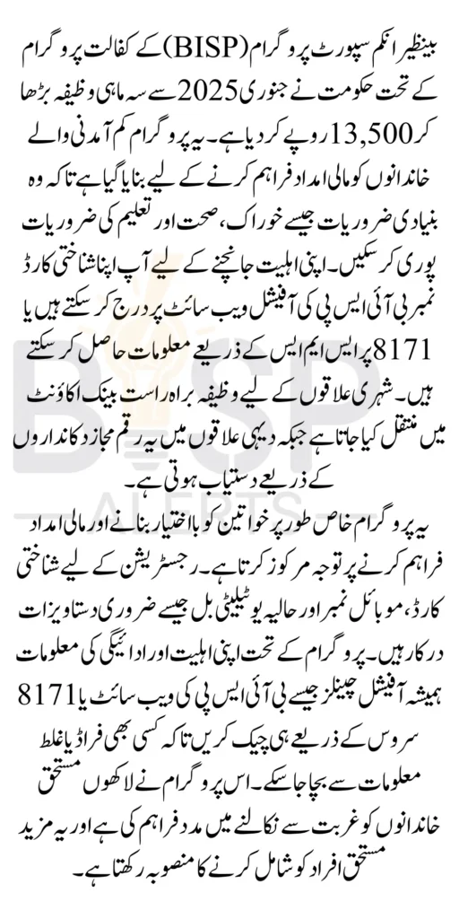 The BISP program has transformed countless lives by addressing poverty at its roots. The increased stipend of 13,500 in 2025 will further empower families, especially women, to: