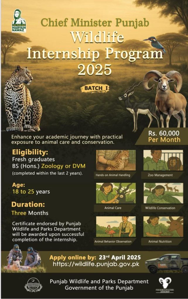 The Chief Minister Punjab Wildlife Internship Program 2026 is more than an internship—it’s a platform for shaping the future of wildlife care in Pakistan. From hands-on experience to a well-paying stipend, and from expert supervision to a government-recognized certificate, this program offers all the right tools to begin a meaningful career.
