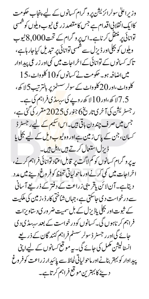 The CM Solarization Program is a groundbreaking initiative that combines financial relief, environmental sustainability, and agricultural growth. By offering substantial subsidies and promoting green energy, the program empowers farmers to achieve long-term success. Apply now before the January 6, deadline to transform your farming operations and play a part in building a brighter, greener future for Punjab’s agriculture.