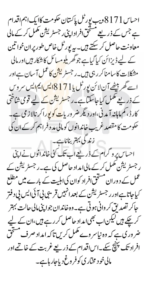 8171 Web Portal Check New Payment In Benazir Income Support Program