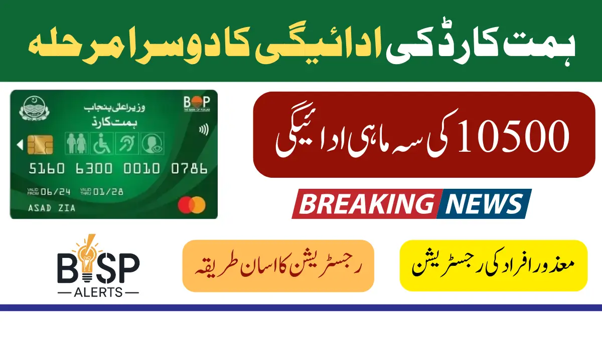 Himmat Card Payment Phase 2 The Punjab government, under the leadership of Chief Minister Maryam Nawaz, has introduced Phase 2 of the Himmat Card program. This initiative aims to provide financial support to disabled individuals across Punjab, empowering them to lead better lives. The quarterly payment of 10500 can now be withdrawn conveniently using the Bank of Punjab BOP ATM, requiring only the Himmat Card and an original CNIC. Here’s a complete guide to help you understand and benefit from this program.