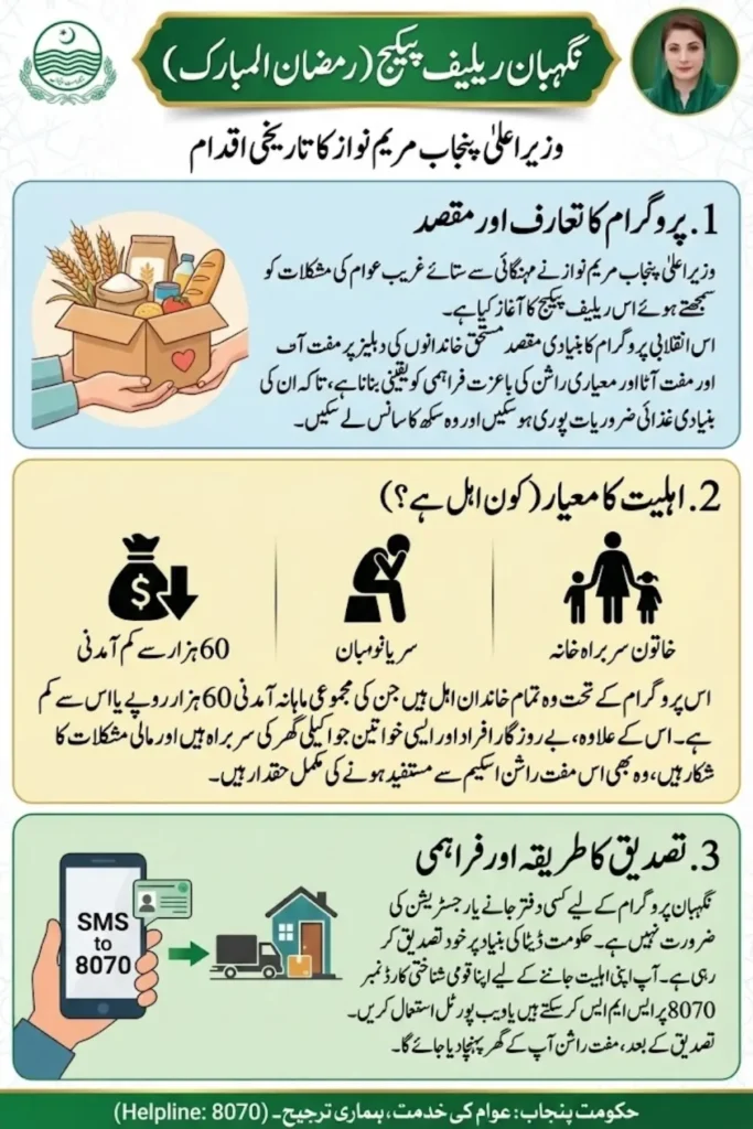 The Nigehban Relief Package is a people-focused initiative launched by the Punjab government to protect poor and deserving families from rising inflation and food insecurity. By ensuring doorstep delivery of free atta and ration, along with simple eligibility checks through CNIC and the 8070 portal, this program aims to restore dignity and ease for vulnerable households. Those who meet the criteria should stay updated and verify their eligibility to benefit from this much-needed relief.
