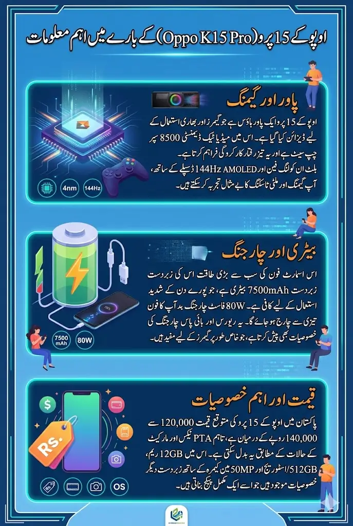 The Oppo K15 Pro is not just another mid-range smartphone. It brings a combination of advanced hardware, a premium build, and a large battery that is rarely seen in this segment. The addition of features like a built-in cooling fan and RGB lighting shows that Oppo is targeting young users and gamers in Pakistan who want both style and performance in one device. This phone is expected to create strong competition in the local market once it officially launches.