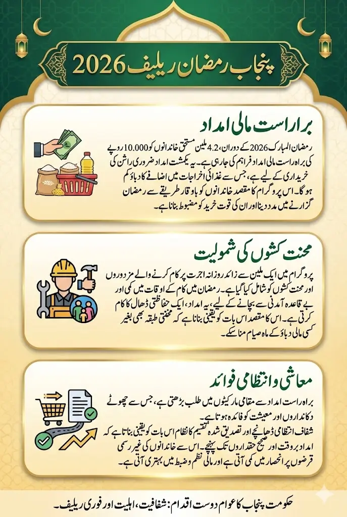 Punjab Ramadan Relief 2026 is a period when household spending rises sharply due to increased food consumption, charitable obligations, and family gatherings. For low-income families, this seasonal rise in expenses often creates difficult financial trade-offs. The Ramadan Relief 2026 initiative has been introduced to directly reduce this pressure by providing financial assistance that can be used immediately for essential ration purchases. Across urban neighborhoods and rural communities, the program is being viewed as a practical intervention aimed at ensuring that families can observe Ramadan with dignity and stability.