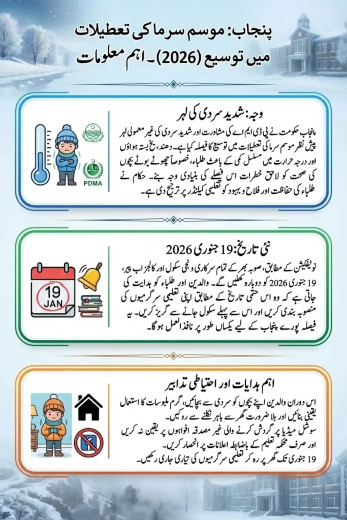 The decision to extend winter vacations shows that the Punjab government is willing to adjust policies when public safety is at stake. Instead of strictly following a fixed calendar, authorities chose flexibility based on expert advice and ground realities.